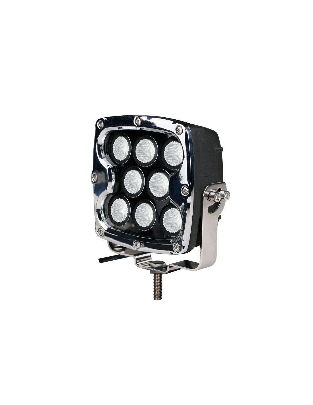 ?Faro largo alcance LED CREE 80W cromado Forma: cuadrada Dimensiones: 7" (130 x 130 x 75,5mm) Longitud del cable: 37cm Color: cromado Potencia: 80W Flujo luminoso: max. 5600 lm Tipo de LEDs: 8 x 10W LED CREE Carcasa de aluminio vaciado a presión Voltaje: 10-30V DC Instalación: 1 x soporte lateral Temperatura de color: 6000-6500K Temperatura de funcionamiento: -40C°~+65C° Durabilidad: más de 30000 horas Certificación: CE, ROHS, IP68, ECE R112 E13