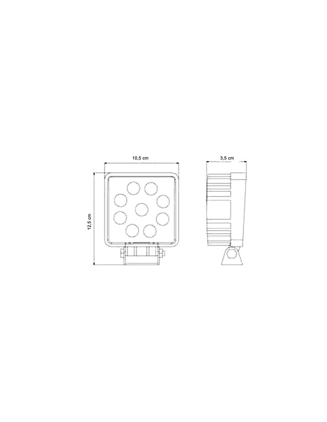 La lámpara de trabajo LED 9X en formato cuadrado ha sido diseñada para ofrecer una iluminación eficiente y resistente en entornos exigentes. Con una potencia de 27W y un flujo luminoso de 1774 lúmenes, proporciona una luz de tipo flood (inundación), ideal para mejorar la visibilidad en áreas de trabajo con poca iluminación.