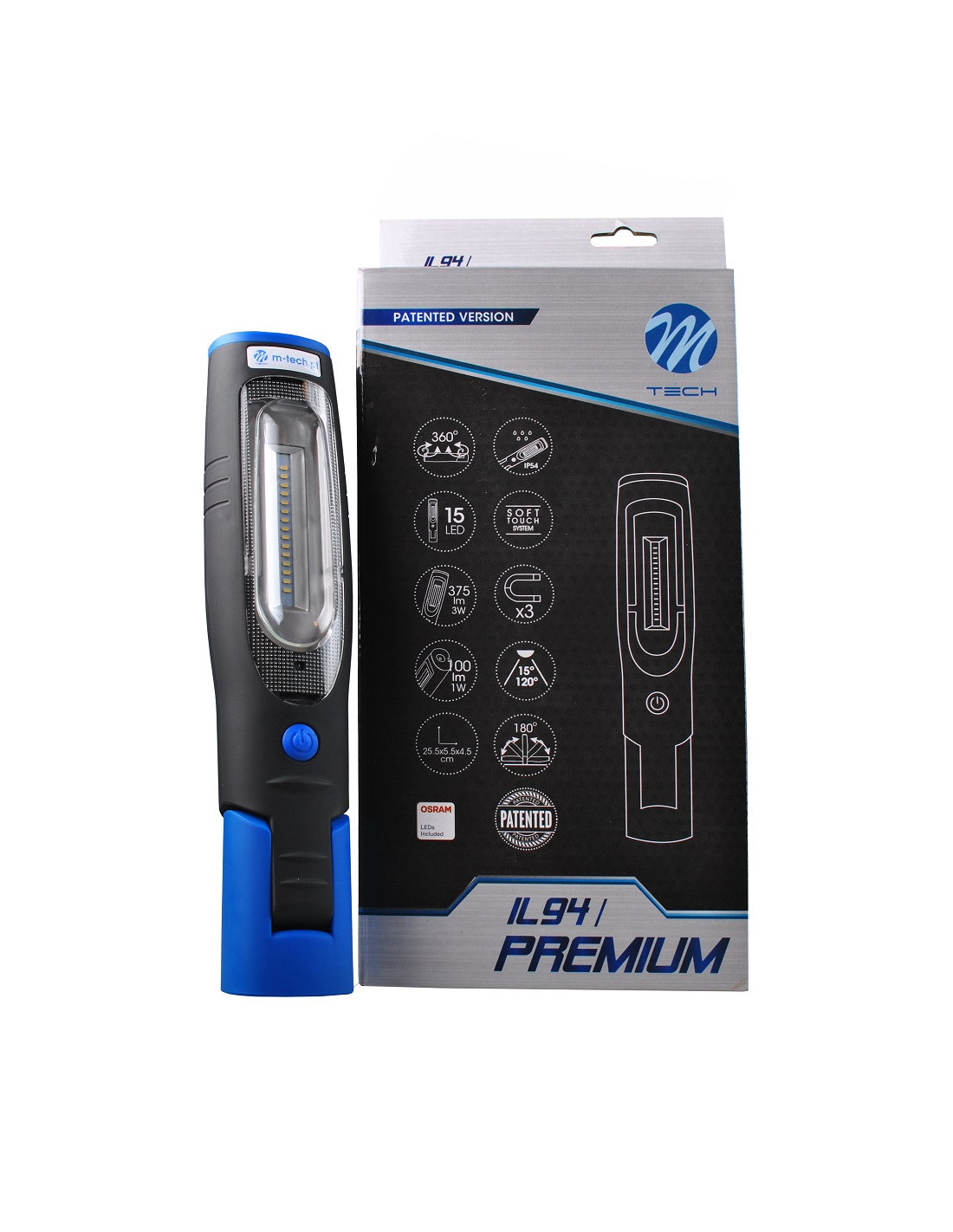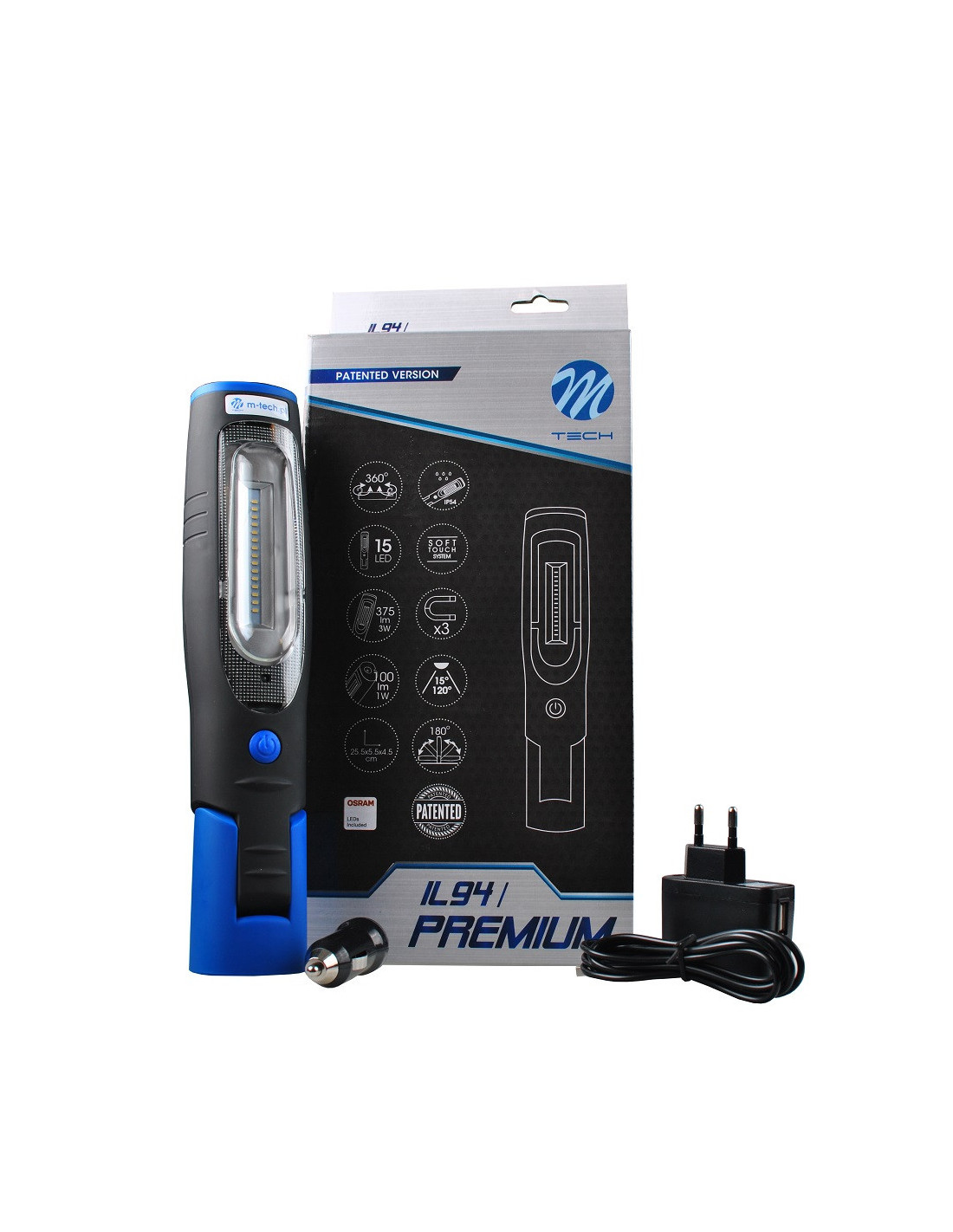 Lámpara de inspección único e innovador basado en la parte superior de calidad LED OSRAM Opto Semiconductors. La lámpara asegura una luz fuerte en lugares de difícil acceso y es muy práctico debido a los imanes utilizados y mango antideslizante. Certificado con IP54, lo que hace que sea completamente resistente al agua y la suciedad y resistente a los golpes. Es una herramienta perfecta para el trabajo en condiciones muy duras. Modos de luz: - Modo 1: 100% de la potencia del LED frontal - Modo 2: 100% de la potencia de los principales indicadores LED Especificaciones: - Dimensiones: 25,5x5,5x4,5cm - Dos fuentes de luz - Batería integrada - imanes fuertes - Dos ganchos giratorios - Caja de ABS - Certificado IP54 Fuente de luz: - 1x HP 1W LED, 100lm - 15x LEDs SMD3014 3W Osram Opto Semiconductors Puede ser cargado por: - USB - Toma de corriente de 220V - Toma de mechero