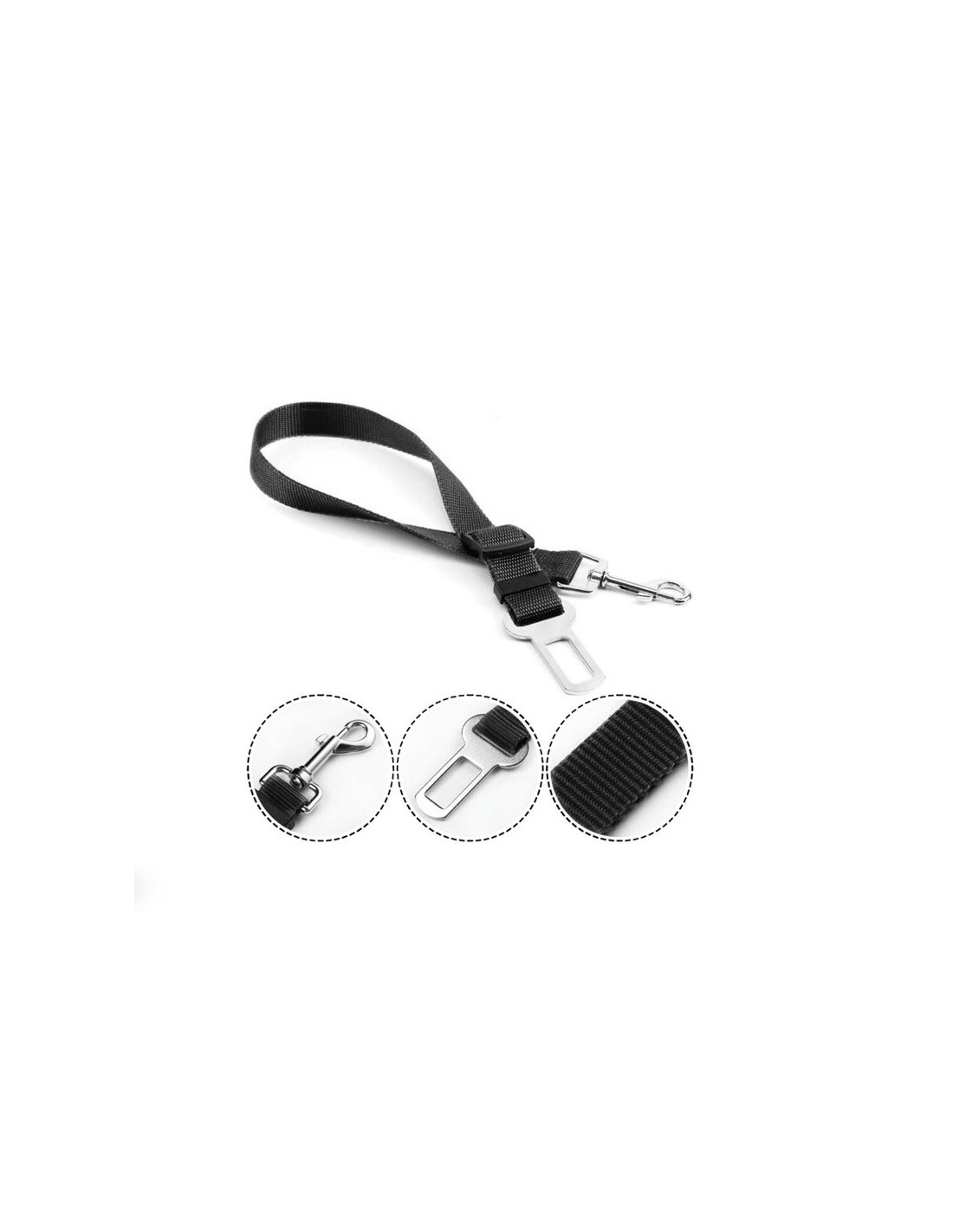 Kit de correa para mascotas con anclaje cinturón de seguridad con ajuste de longitud regulable desde 45 a 70 centímetros.