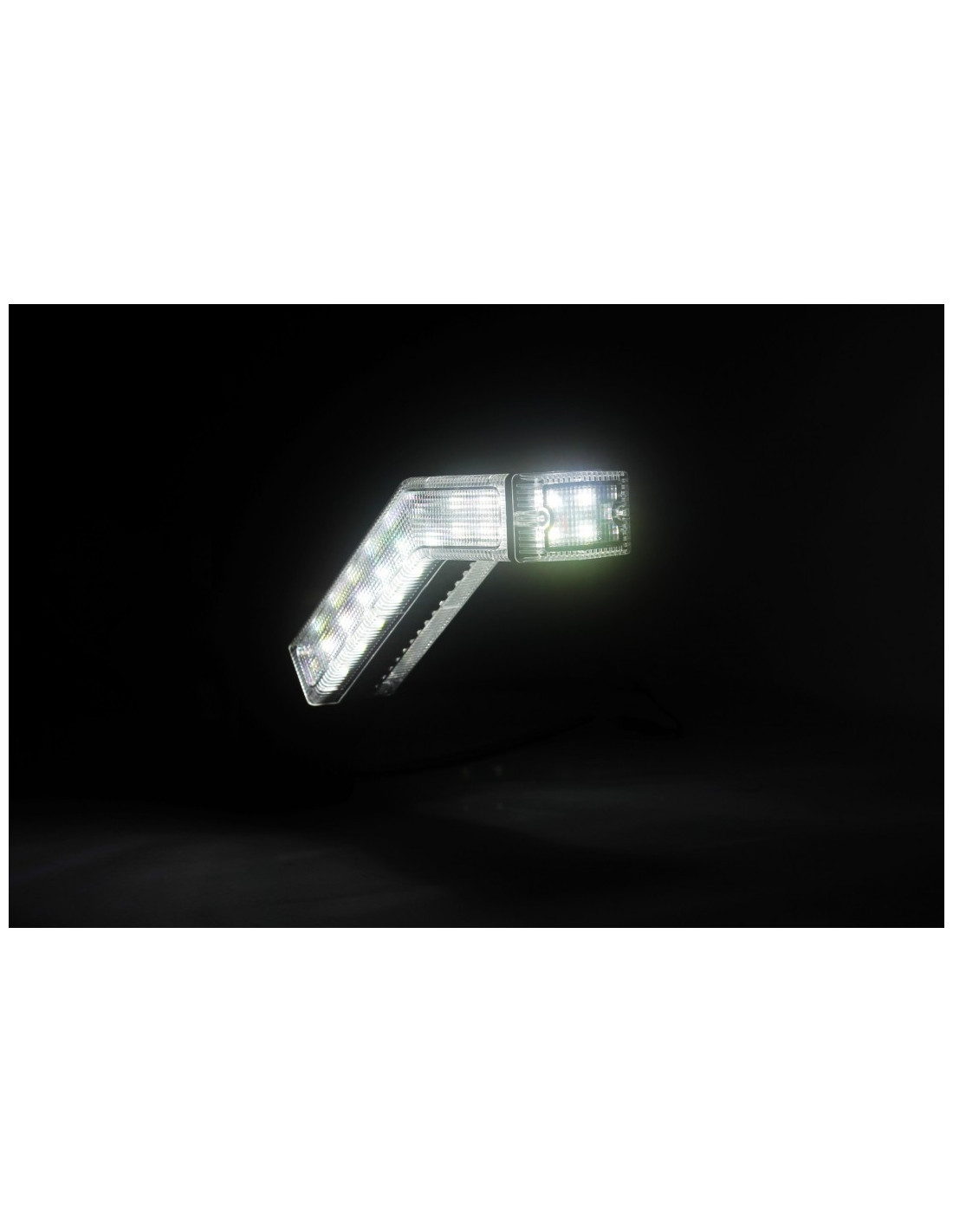 Este práctico foco de led se instala en el lateral de nuestro vehículo y nos proporciona dos fuentes de luz de trabajo: