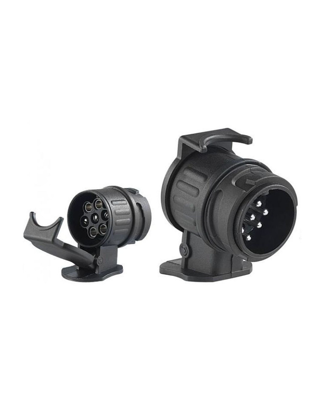 Echufe adaptador de 12 voltios para conectar un remolque con un enchufe de 7 pines a un automóvil con un enchufe de 13 pines.