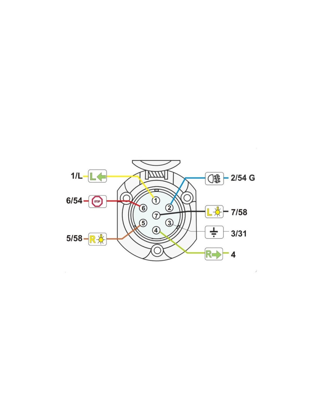 Base metálica de 7 pines (12 voltios, con tapa de cierre) para remolques.
