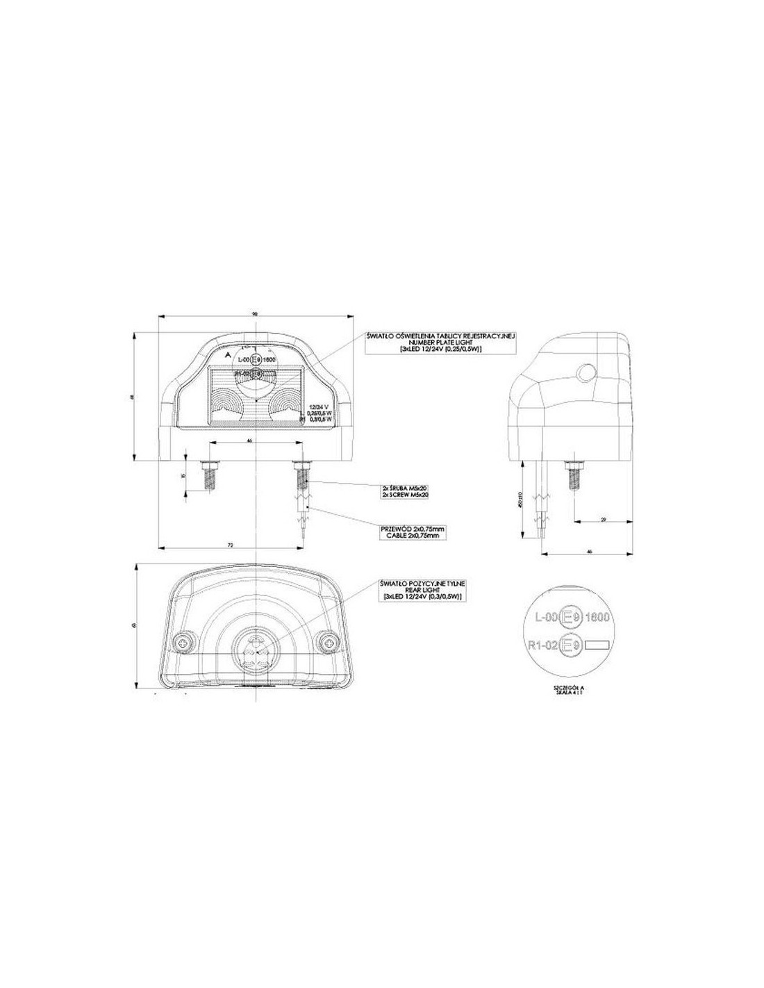 Piloto rojo universal para iluminación de la placa de matrícula trasera.