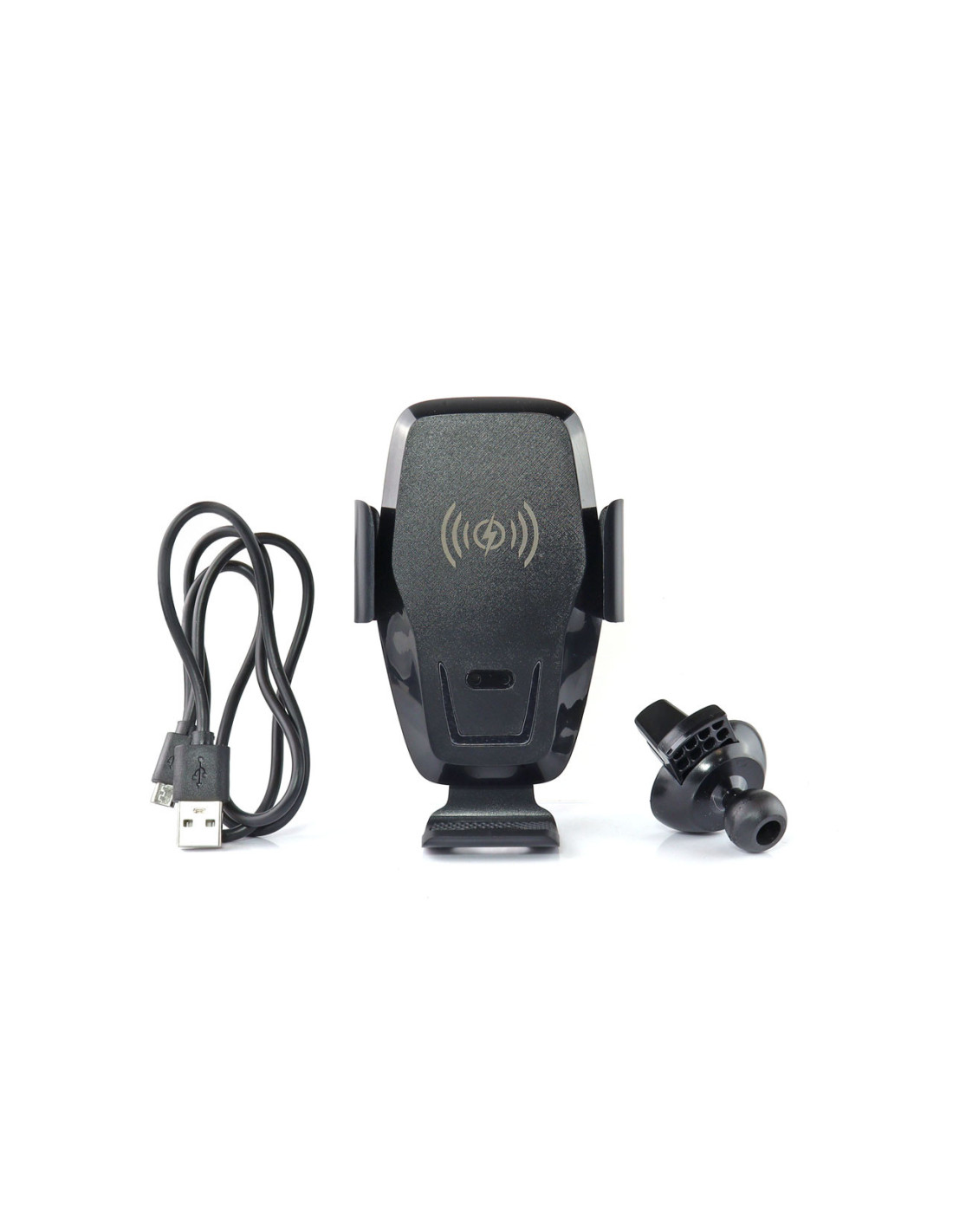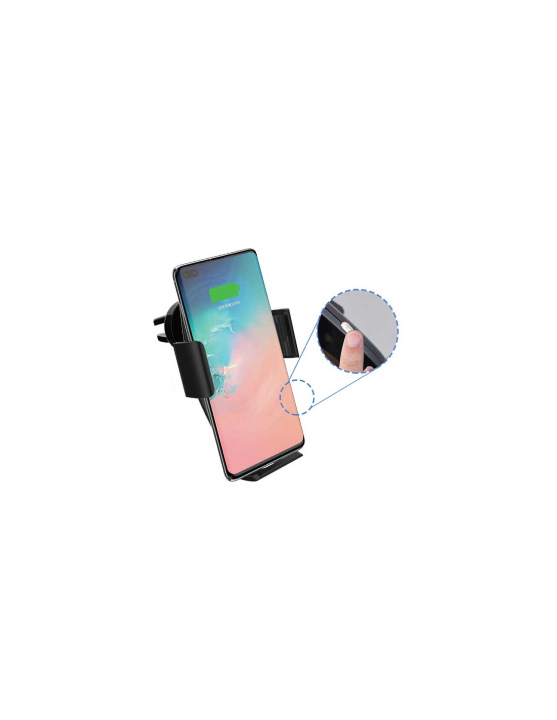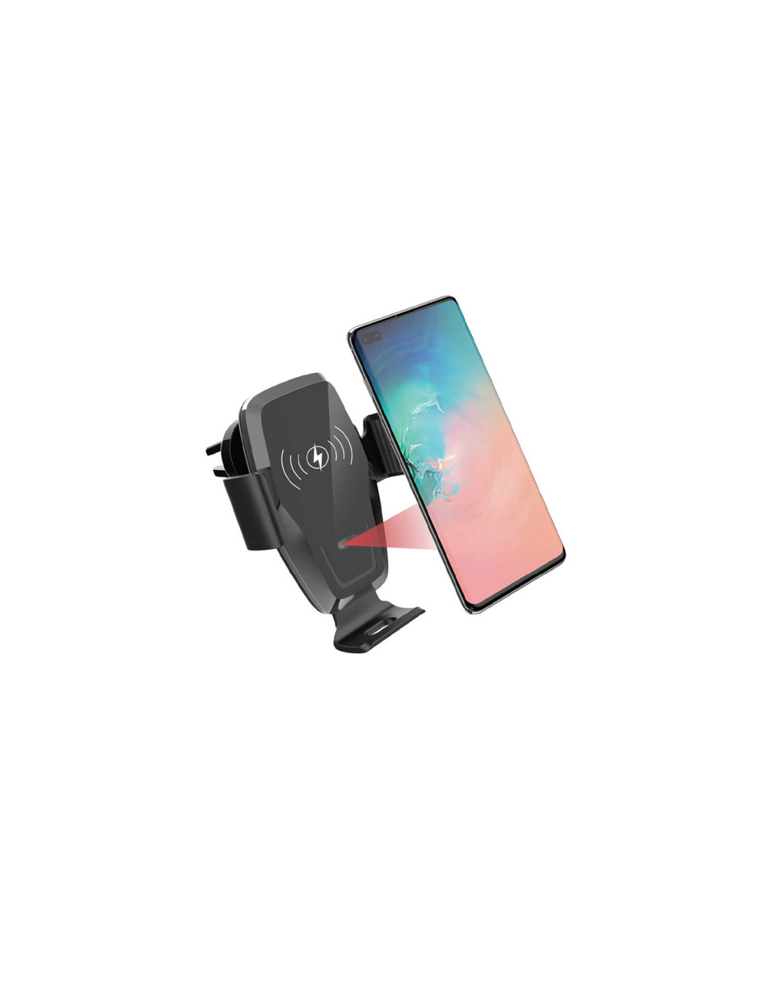 Porta móvil con cierre automático, con sensor de proximidad y potente cargador inductivo. Se puede montar en el parabrisas mediante el brazo ajustable con ventosa incluido.
