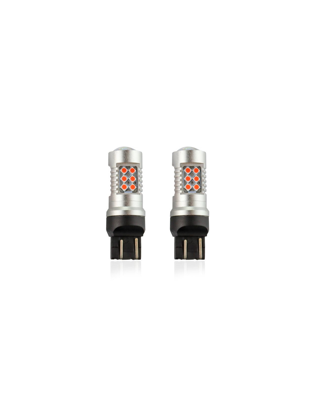 Estas dos bombillas de led can-bus T20 de un polo son en color rojo para utilizar en luz de freno o stop. Las podemos utilizar en los coches que llevan en origen bombillas de freno/stop de color rojo de casquillo T20 W21W (12 voltios).