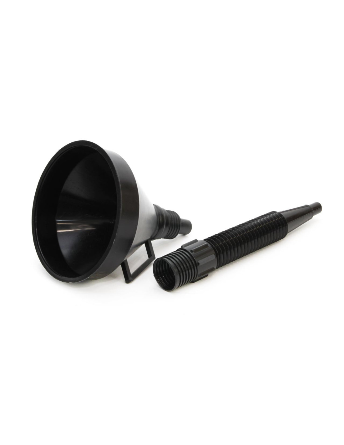 Cómodo embudo de plástico compuesto de 2 piezas para utilizar con bidones de gasolina o con otras aplicaciones diversas.