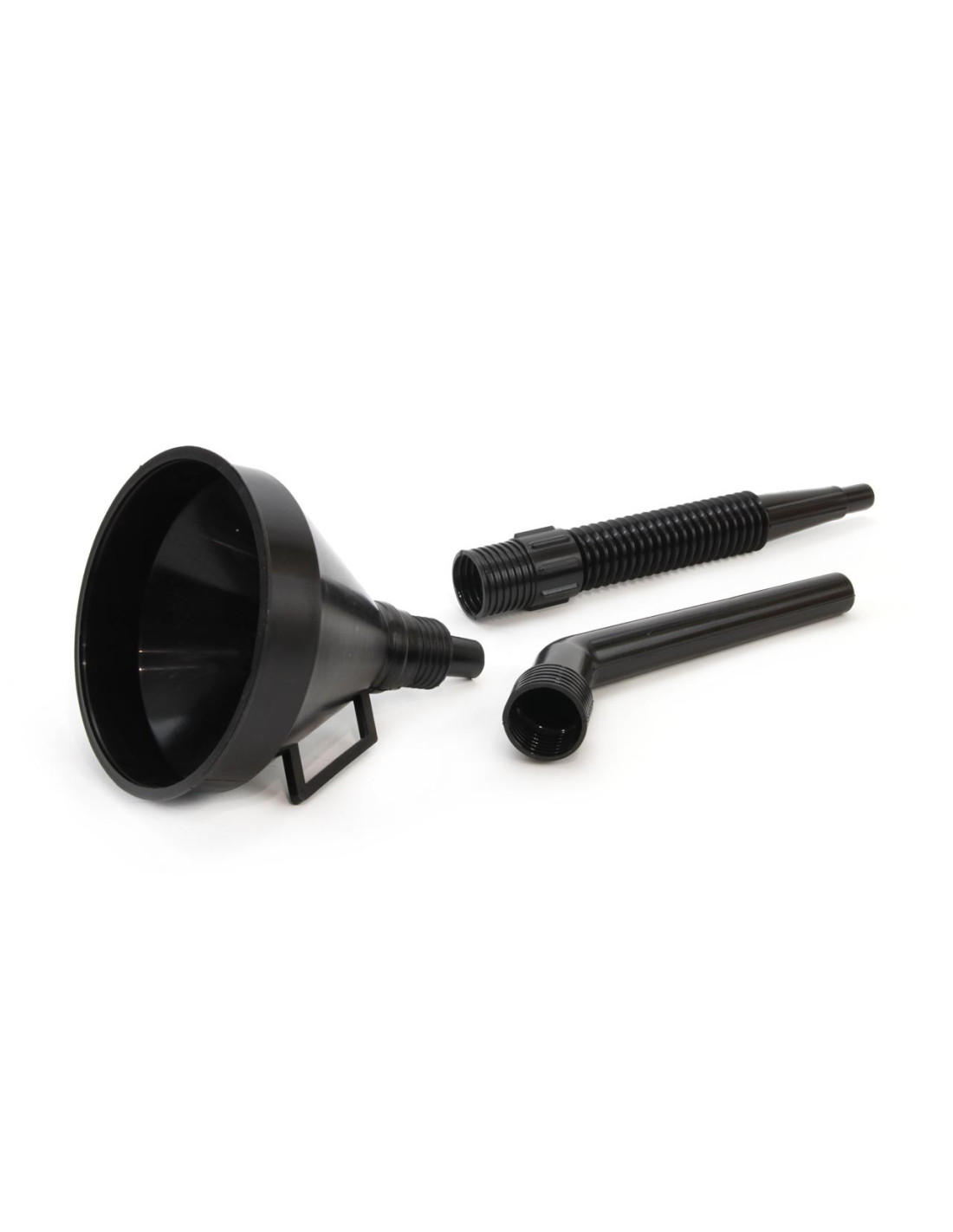 Cómodo embudo de plástico compuesto de 3 piezas para utilizar con bidones de gasolina o con otras aplicaciones diversas.
