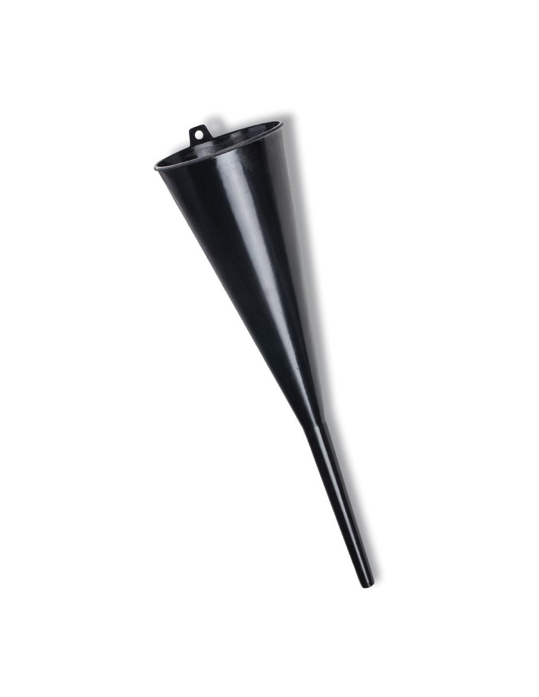 Cómodo embudo de plástico de diámetro pequeño para utilizar con bidones de gasolina o con otras aplicaciones diversas. Mide 45 centímetros de largo.