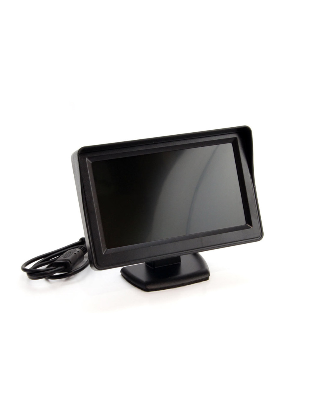 Esta pantalla a todo color nos ofrece una gran resolución gracias a su display TFT de 4,3". Simplemente debemos conectarla a la alimentación de 12 voltios y a nuestra cámara de visión trasera y aparcaremos con facilidad y comodidad, sin golpear ningún obstáculo.