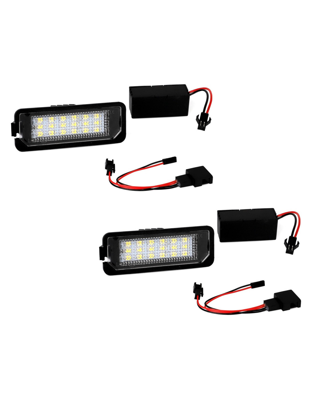 Este kit de luces led para matrícula trasera del VW Golf 6 contiene 2 plafones led listos para montar y utilizar. La cantidad y el tipo de LEDs: 18 x LEDs de OSRAM.