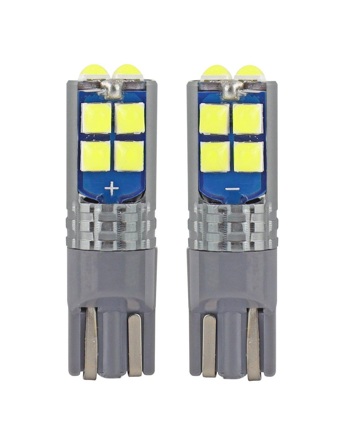 2 bombillas de led blancas de cuña T10 w5w con tecnología can-bus para evitar el fallo de bombilla fundida, 10 leds smd por cada bombilla.