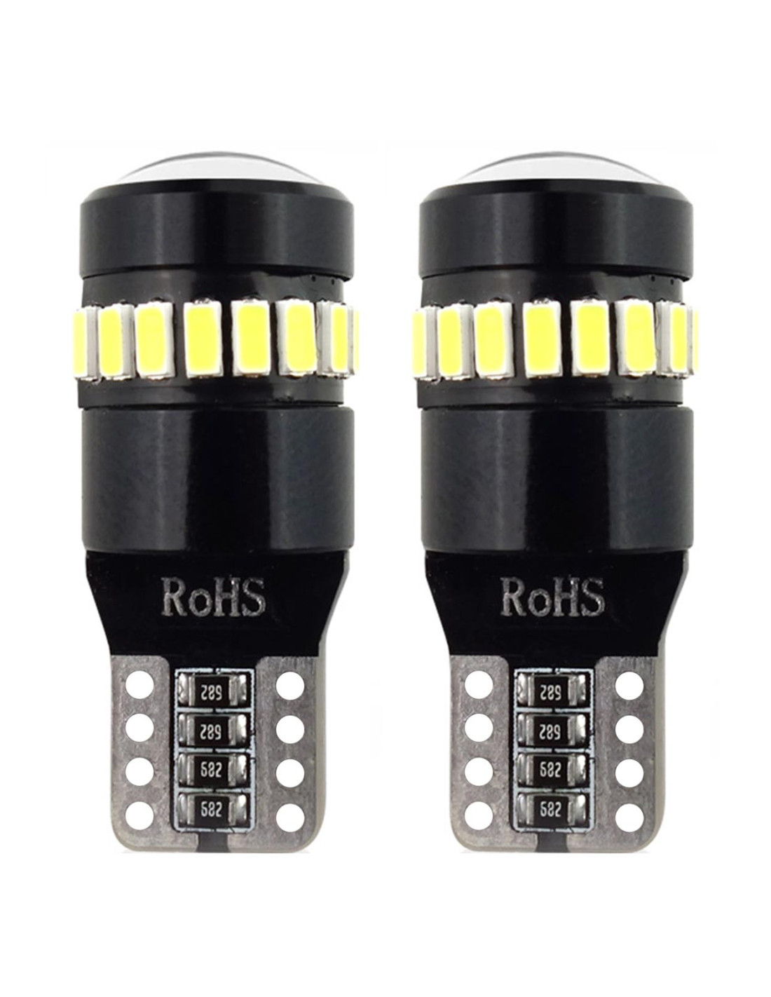 2 bombillas de led blancas de cuña T10 w5w con tecnología can-bus para evitar el fallo de bombilla fundida.