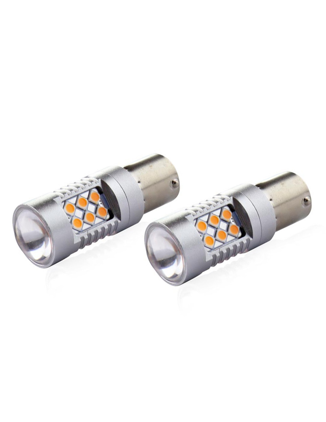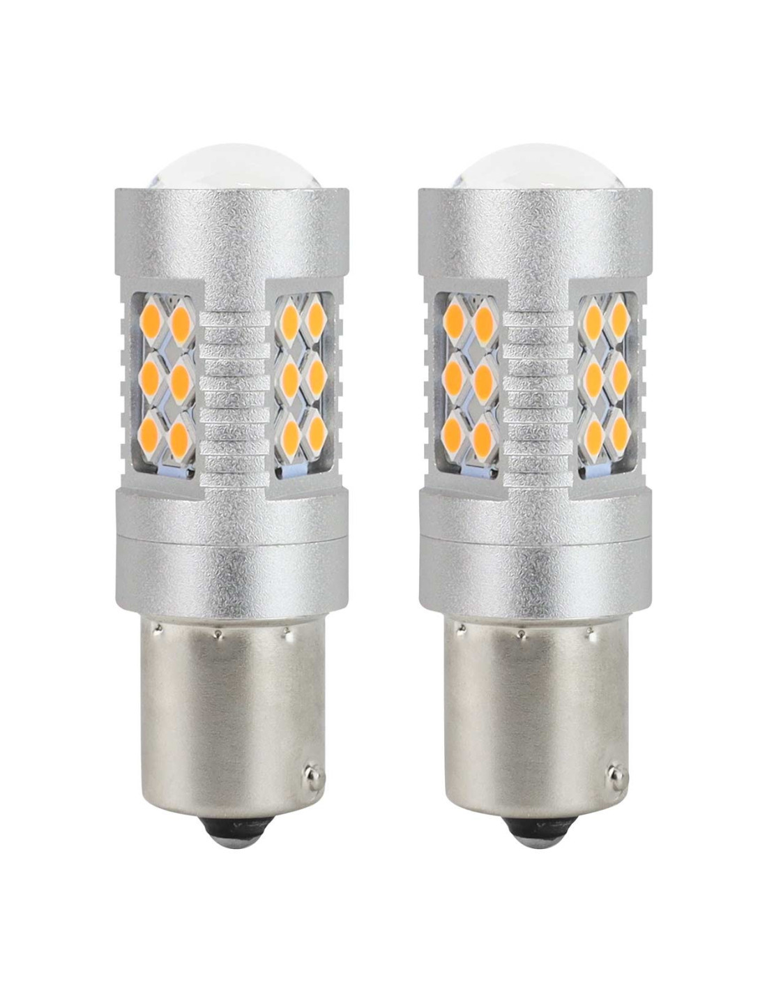 Estas dos bombillas de led en color ámbar nos permiten utilizarlas en intermitencia de nuestro coche. Incorporan el sistema de can-bus para evitar el fallo de check-control y son del casquillo PY21W (BAU15S).