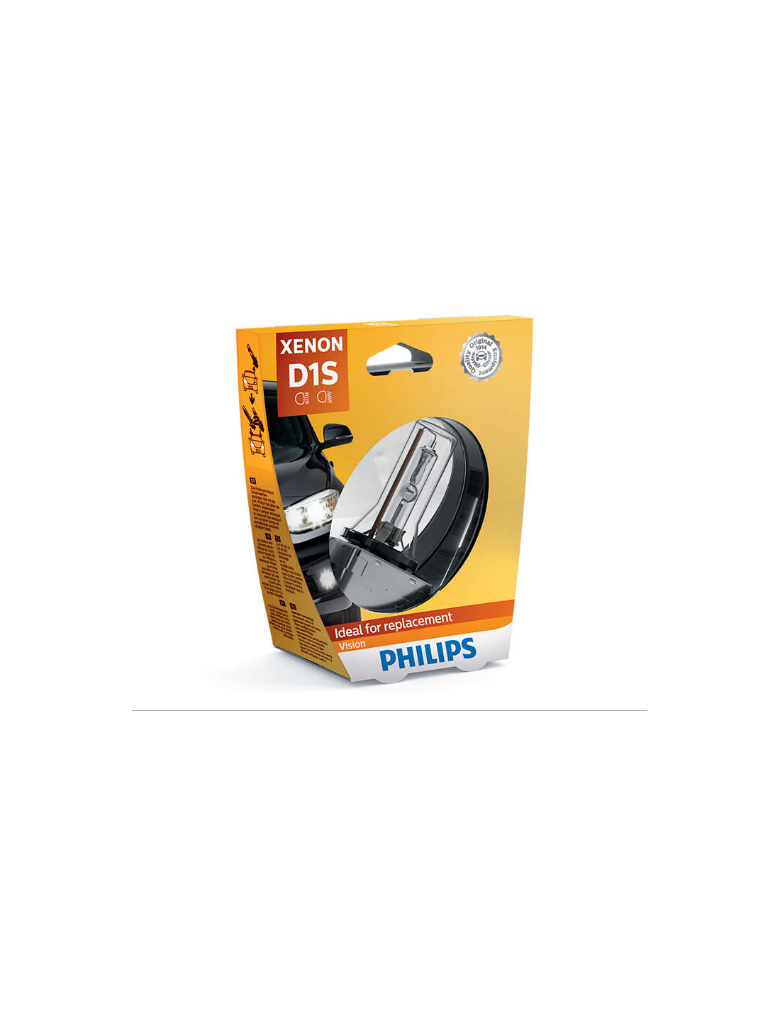 AutoAcc.es - Accesorios para Automoción Philips D1S Vision 85V35W PK32d-2 S1 Las lámparas Vision Xenon de Philips son el reemplazo ideal para los faros de su vehículo. Estas lámparas ofrecen un rendimiento y calidad equivalentes a las lámparas estándar utilizadas por muchos fabricantes de automóviles. Con una temperatura de color promedio de 4600 Kelvin, generan una luz agradable que mejora el tiempo de reacción y contribuye significativamente a la seguridad vial. Permiten identificar obstáculos y peligros con mayor antelación, facilitando una respuesta adecuada a las situaciones del tráfico.