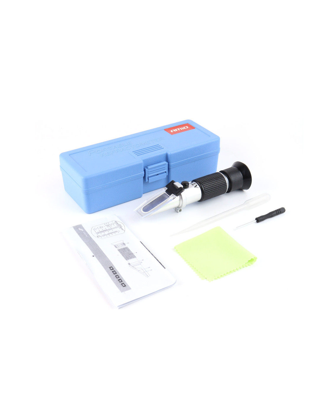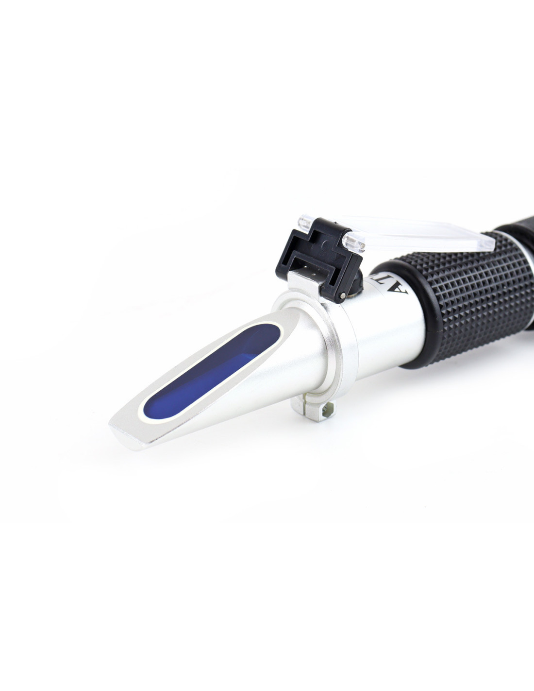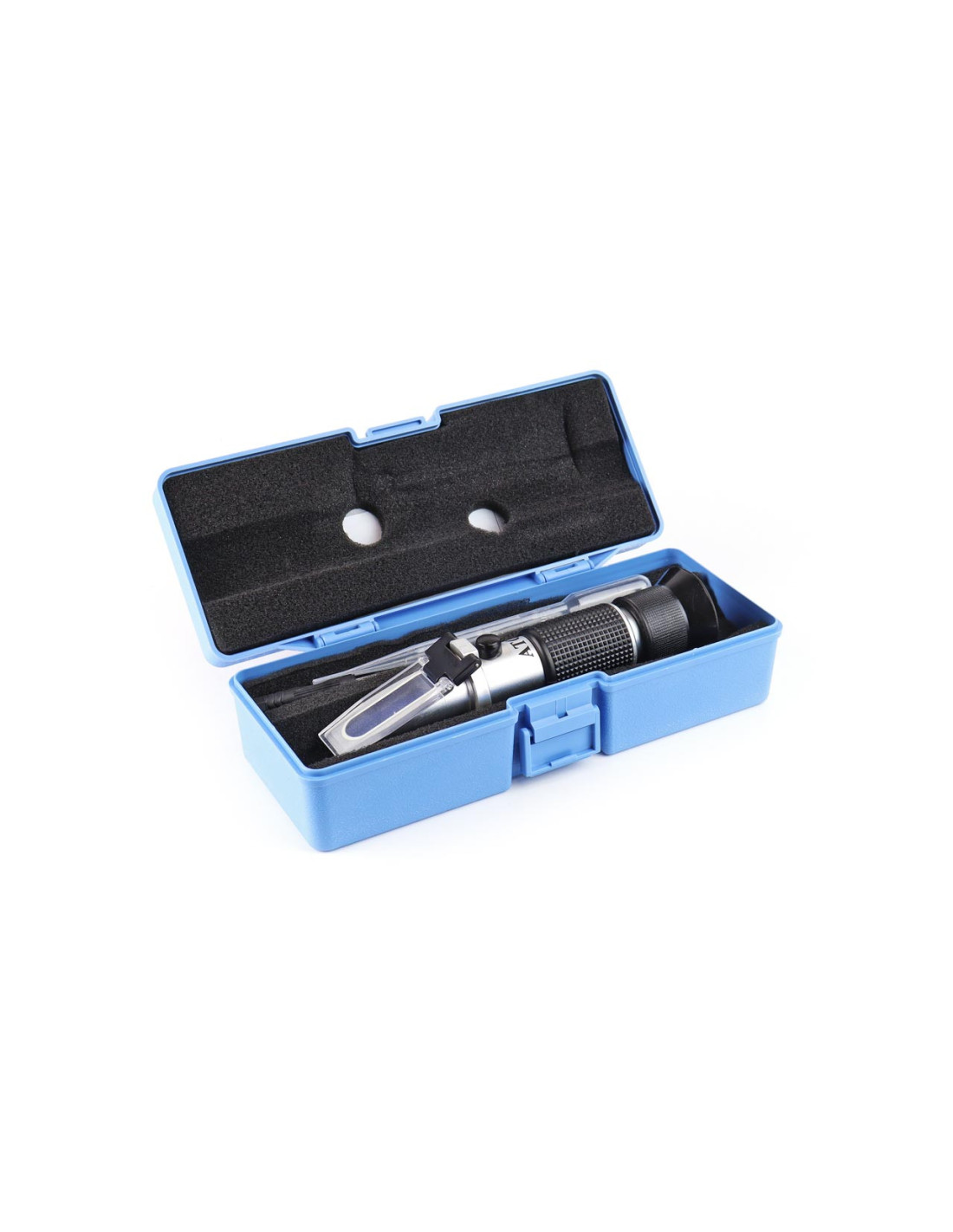 Refractómetro profesional para medir fluidos de funcionamiento de turismos, camiones y autobuses. Está diseñado para determinar el punto de congelación del líquido lavaparabrisas, refrigerante de propilenglicol y etilenglicol. También da un rango de densidad de electrolitos. El kit incluye una pipeta de muestreo y un paño de limpieza. Todo empaquetado en una práctica caja.