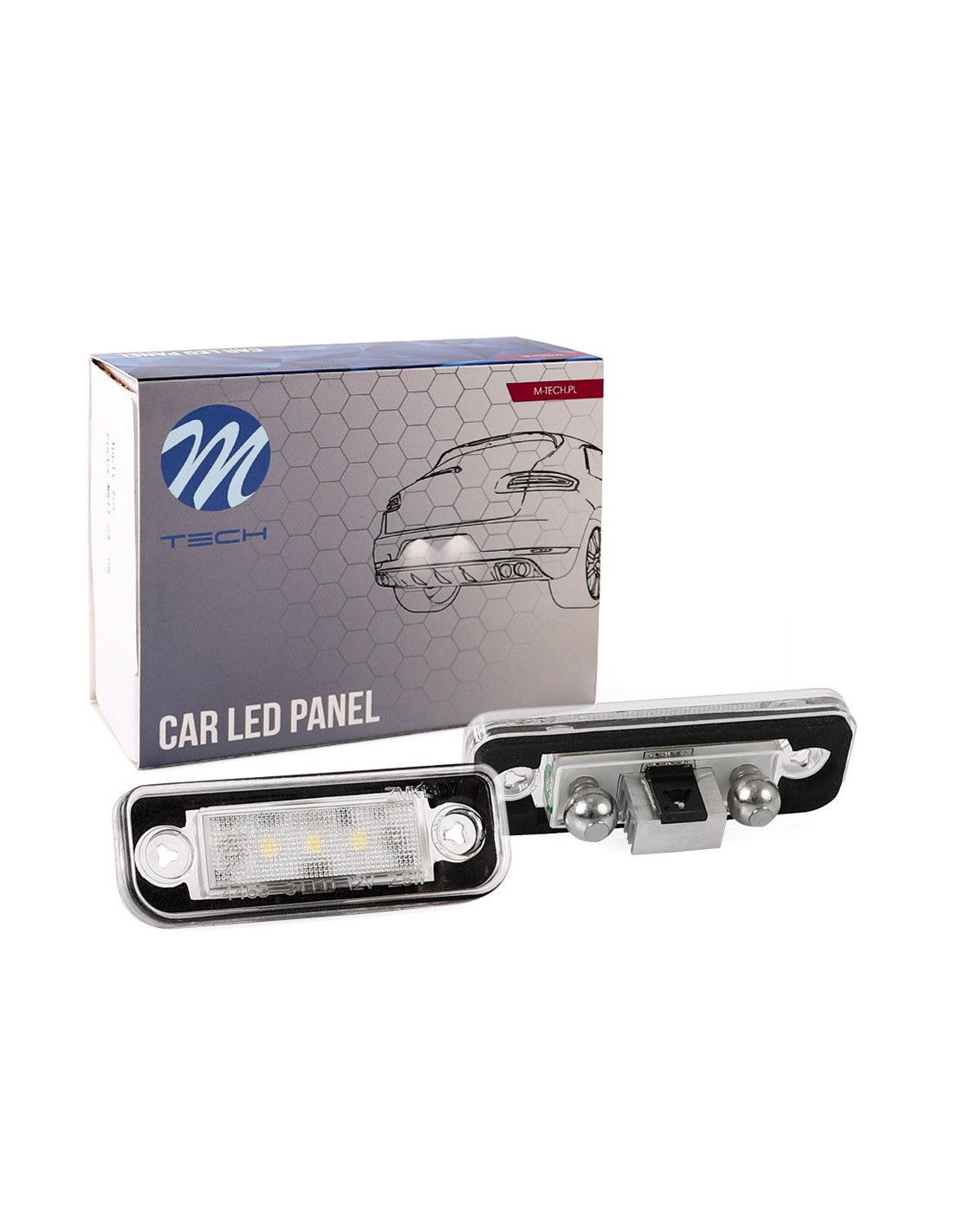 Kit de plafones de LED para matrícula LP-1103 3xSMD2835 para Mercedes W219, W211, W203, R171. Este módulo de iluminación de matrícula es un accesorio de alta calidad que sustituye las luces convencionales por LED, contando con la aprobación legal para circular por carreteras europeas. El set incluye 2 piezas equipadas con 3 LED de 12V y 2.8W cada uno, garantizando una iluminación eficiente y duradera.