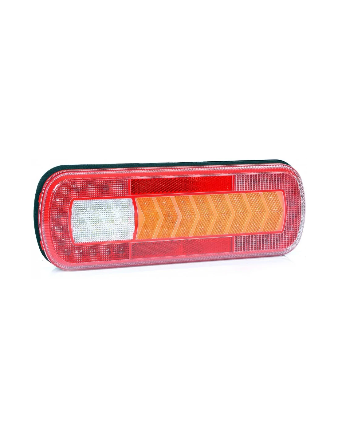 El piloto trasero LED modelo L1830 es una solución de iluminación avanzada diseñada para vehículos, compatible con sistemas de 12 y 24 voltios. Este dispositivo integra diversas funciones como luz de cola, luz de freno, indicador dinámico, luz de niebla, luz de reversa y reflector, lo que lo convierte en una opción versátil y completa para la seguridad vehicular.