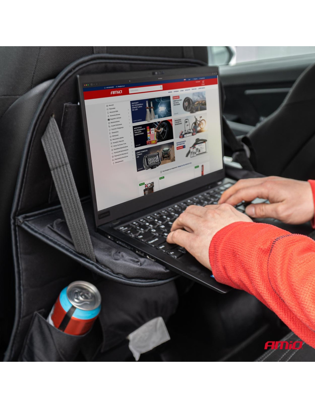 Una de las características más destacadas de este organizador es su mesa plegable, que permite colocar un portátil o disfrutar de una comida de manera cómoda. Esta funcionalidad es especialmente útil en viajes largos, donde la posibilidad de trabajar o comer en el coche puede hacer la diferencia. La mesa se despliega fácilmente y proporciona un espacio adicional que se adapta a las necesidades del usuario.