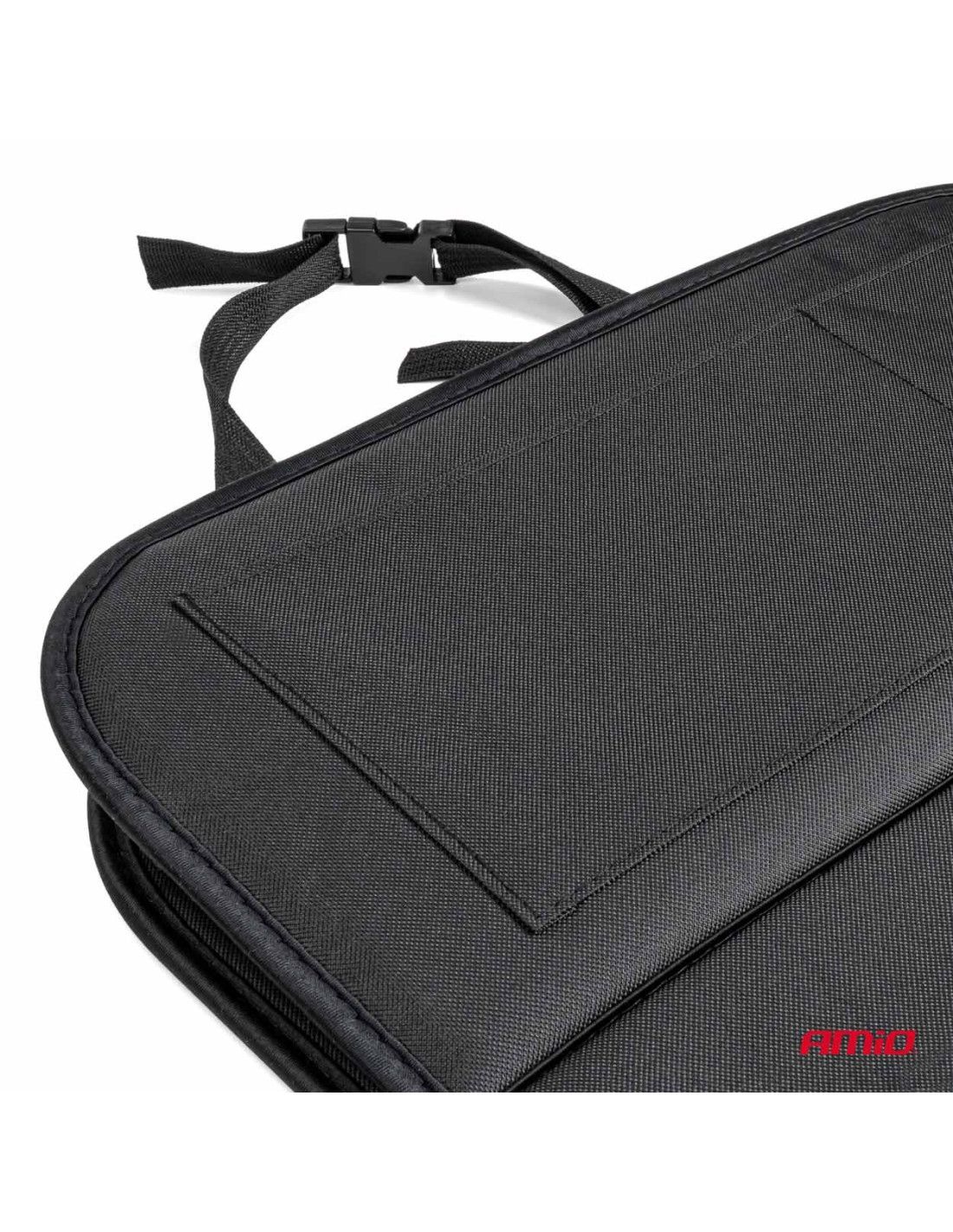 El montaje del organizador es extremadamente sencillo. Se fija alrededor del reposacabezas del asiento delantero mediante una correa, lo que garantiza que se mantenga en su lugar durante el trayecto. Este diseño permite que el organizador sea accesible para los pasajeros de los asientos traseros, facilitando el acceso a los objetos almacenados sin complicaciones.
