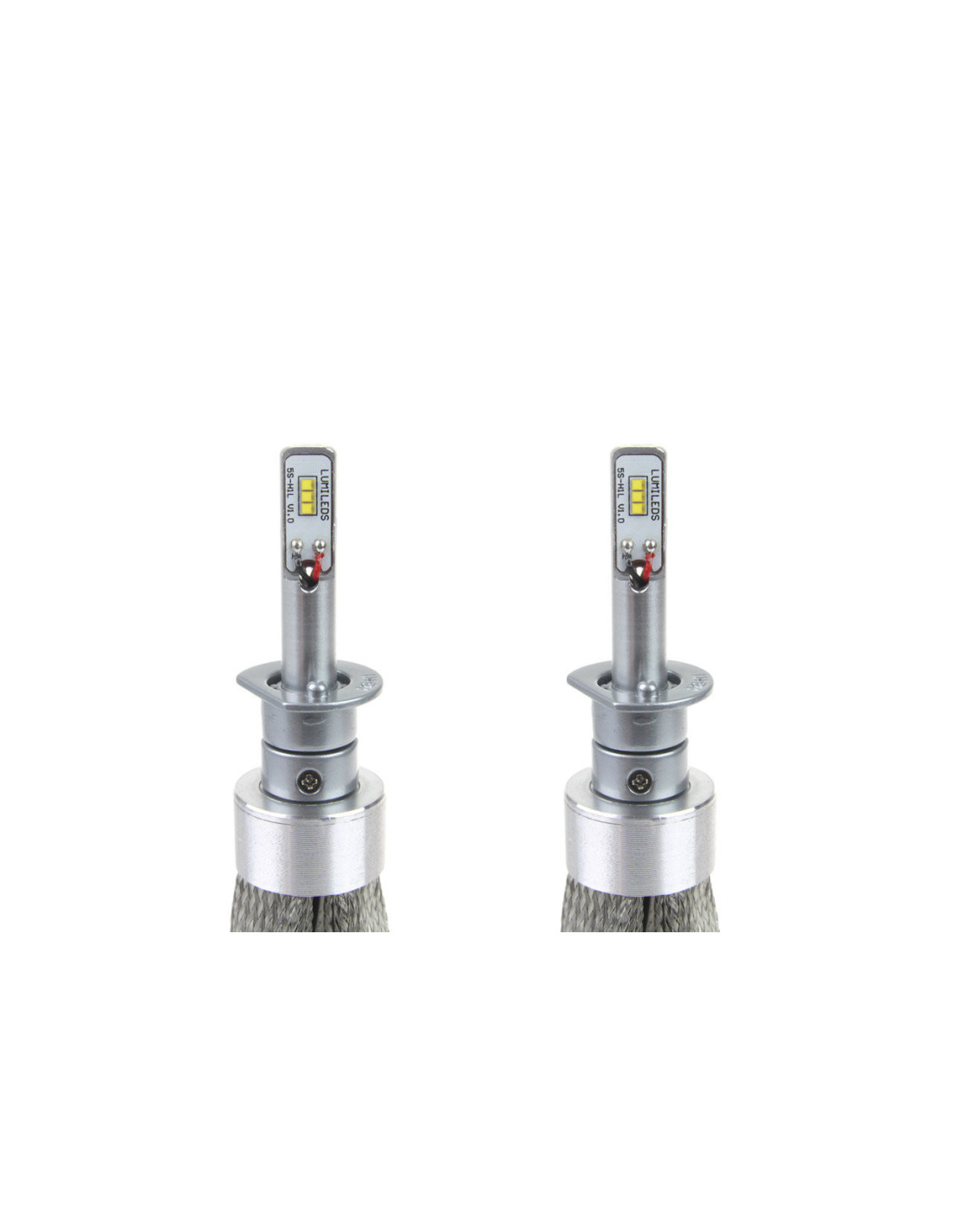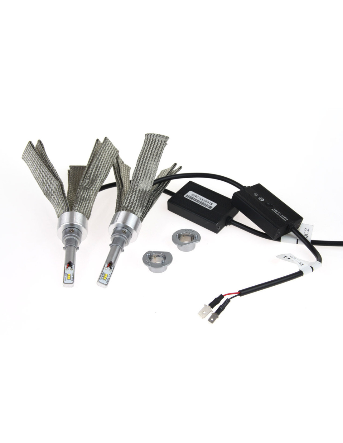 Kit de conversión a LED H1 de alta gama (con disipación de calor pasiva con tiras de aluminio) de la marca ATZ automotive para convertir la luz halógena amarilla original de nuestros faros a luz blanca pura de led. Con este kit, podremos instalar las bombillas en coches en los que tenemos muy poco espacio detrás de la tapa de los faros.