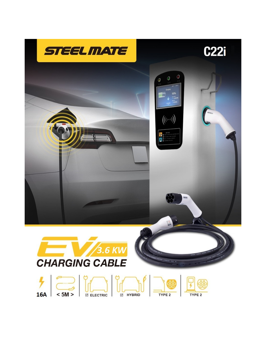 - Compatible con todos los vehículos eléctricos Tipo 2 (IEC62196-2)
