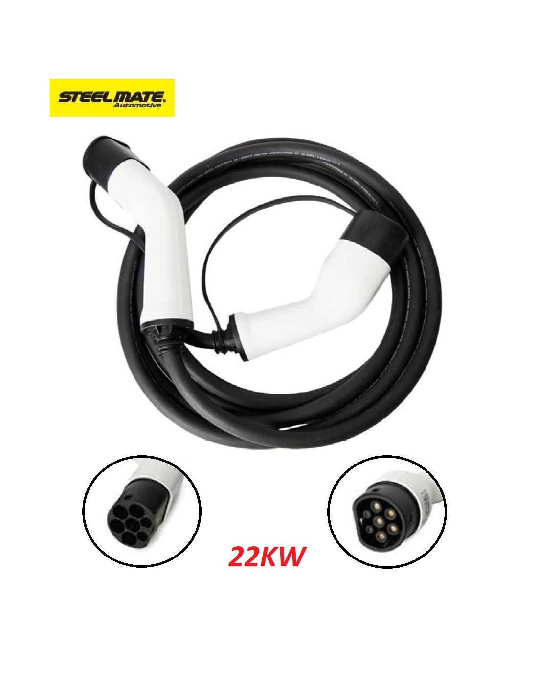 Cable de carga para coches eléctricos equipados con conector tipo 2, trifásico, 32A/480V, 22kW.