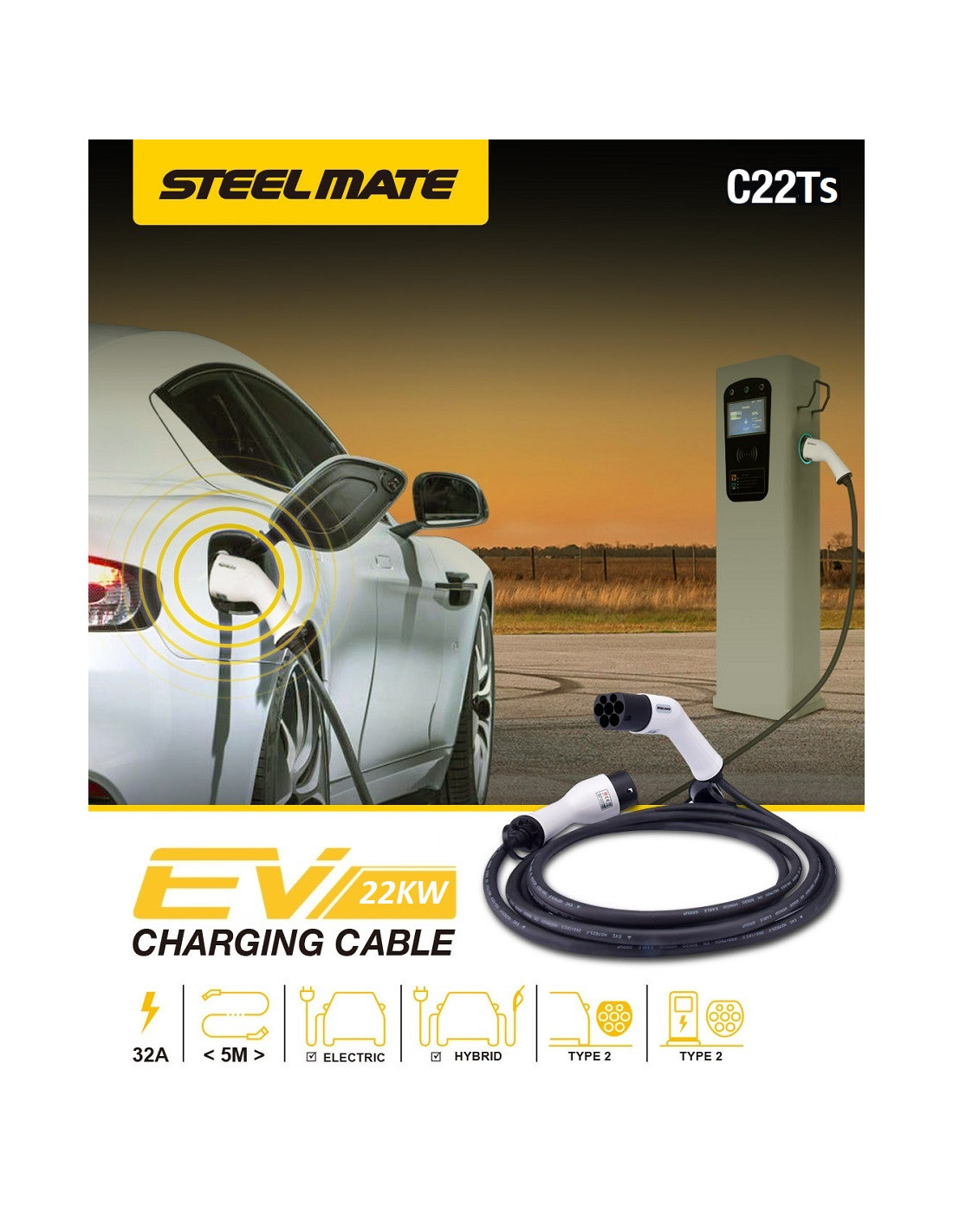 - Compatible con todos los vehículos eléctricos Tipo 2 (IEC62196-2)