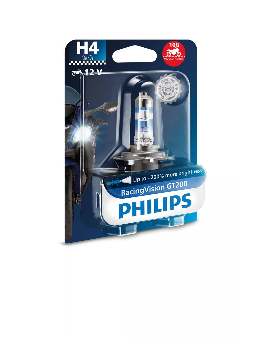 Gracias a su potente haz de luz, la Philips RacingVision GT200 Moto le permite ver más de la carretera que tiene delante. Identifique peligros potenciales con mayor anticipación, reaccione más rápidamente y mantenga un mejor control sobre su vehículo, lo que resulta en una experiencia de conducción más segura y placentera.