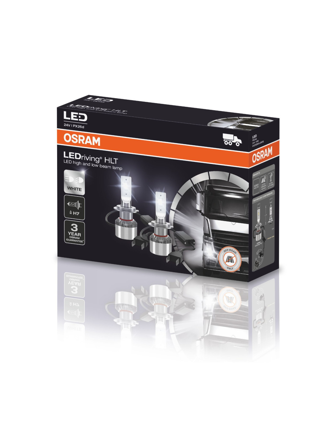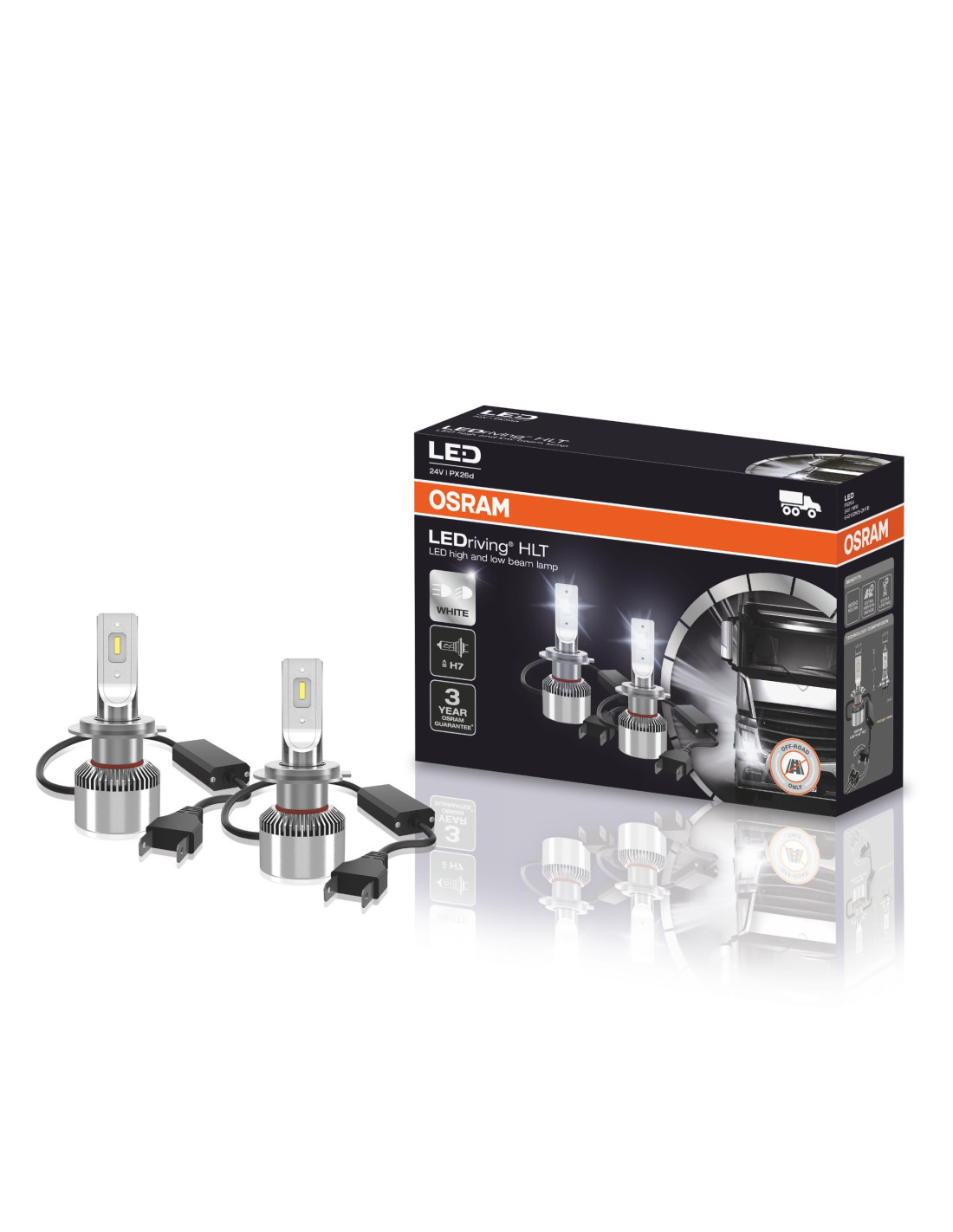 Reemplace las lámparas convencionales de su camión por las lámparas de repuesto LED de OSRAM, diseñadas específicamente para faros, y disfrute de una iluminación LED brillante y altamente eficiente en términos energéticos. Las LEDriving HLT son compatibles con sistemas de 24 V y se destacan por su extraordinaria luminosidad, alta compatibilidad, instalación sencilla y ausencia de interferencias electromagnéticas.