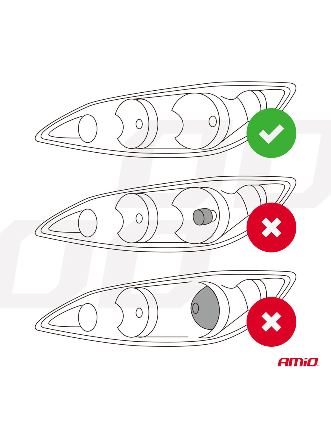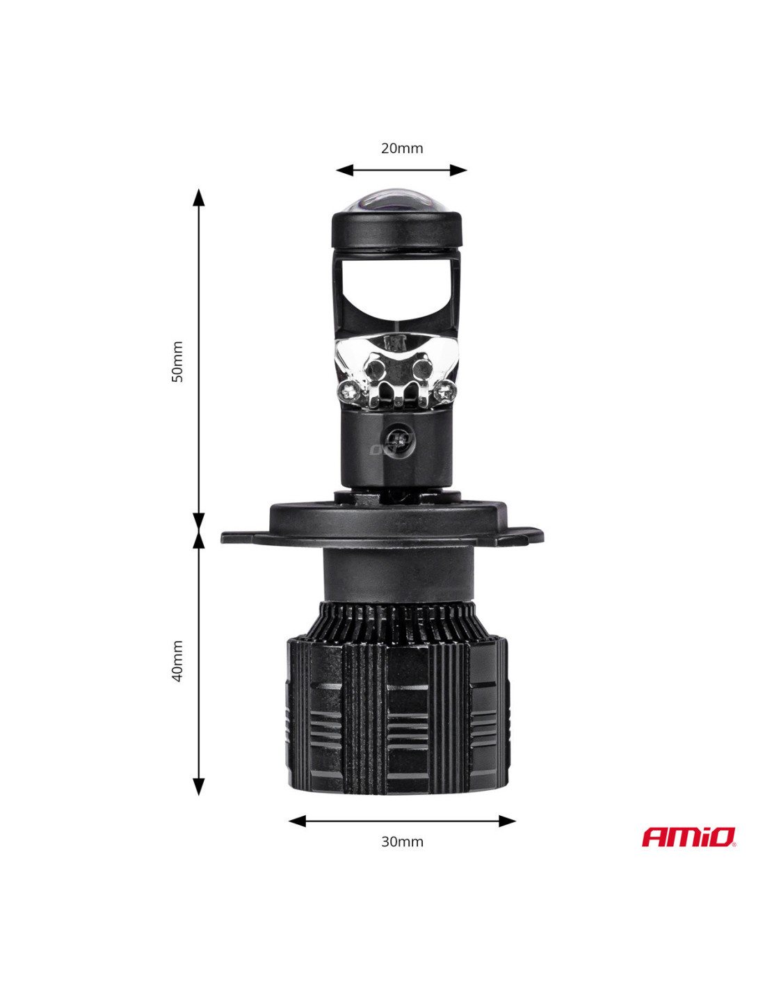El zócalo de las diodos es ajustable, lo que permite adaptarse a diferentes tipos de reflectores. La lente del proyector y los potentes diodos garantizan una distribución de luz casi perfecta en la lámpara sin lentes. Además, el sistema EMC integrado elimina las interferencias de radio FM/CB. Debajo de los diodos se encuentra una base de cobre que evita la emisión de rayos UV e IR, protegiendo el reflector y el proyector de posibles daños por calor.