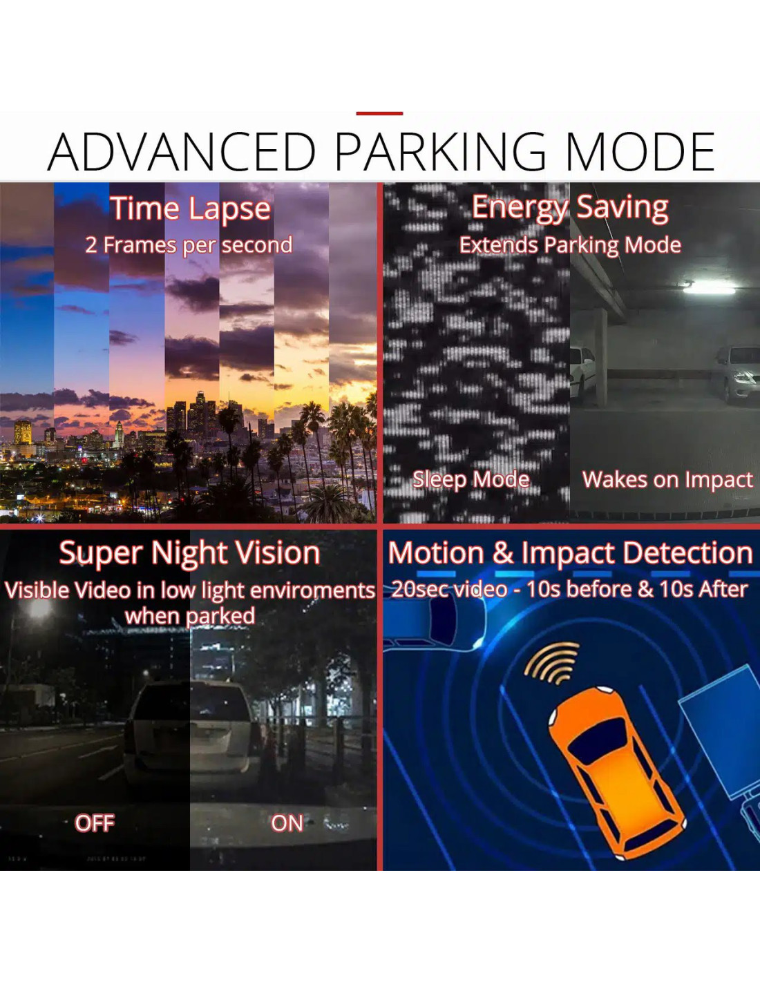 Una de las características más destacadas de la F200 Pro es su Modo de Estacionamiento Avanzado, que incluye la tecnología Super Night Vision y Time Lapse. Esto permite que la cámara continúe grabando mientras el vehículo está estacionado y apagado, proporcionando una vigilancia constante. Además, la cámara está diseñada para monitorear la salud de la batería del vehículo, apagándose automáticamente si detecta problemas, lo que garantiza la seguridad del sistema.