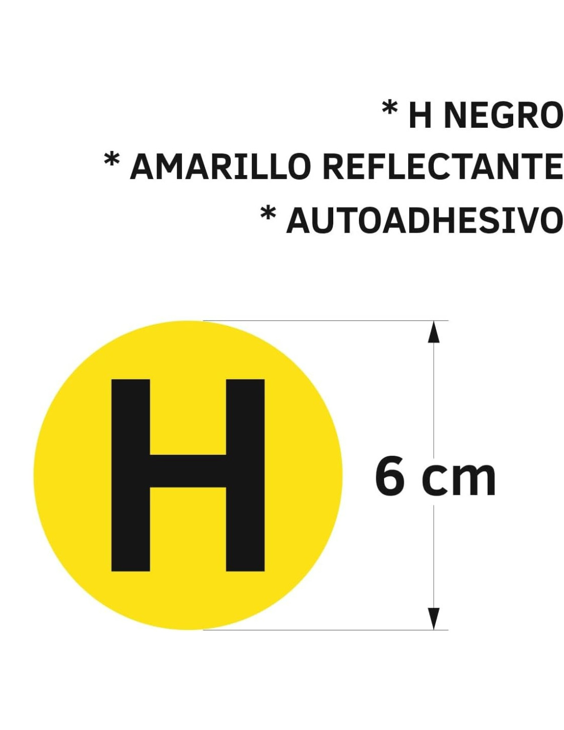 Fabricado en material reflectante amarillo con la "H" en negro mate, ofrece máxima visibilidad tanto de día como de noche. Gracias a su adhesivo trasero, se instala de forma rápida y segura sobre cualquier superficie lisa del exterior del vehículo. Además, el envío es completamente gratuito para que lo recibas sin costes adicionales.