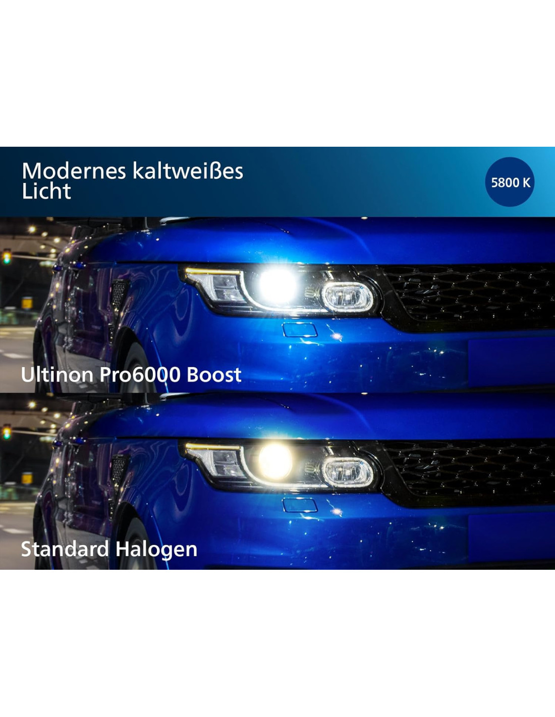 - Hasta un 300 % más de brillo en comparación con el mínimo legal- Luz blanca intensa de 5.800 K con aspecto LED moderno