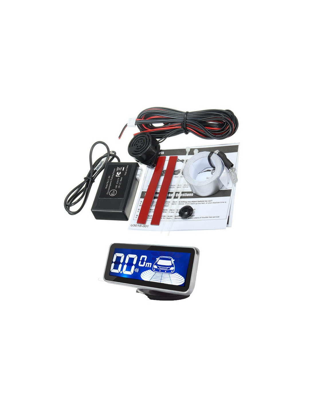 La unidad de control electrónico se coloca dentro del automóvil cerca de la luz de marcha atrás donde se realiza la conexión de alimentación y la señal acústica se puede ocultar fácilmente a los lados del estante del sombrerera