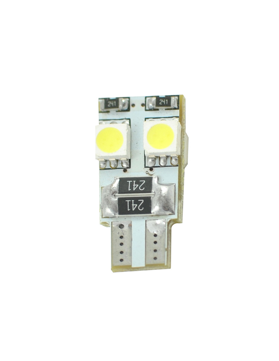Símbolo: W5W Casquillo: W2.1x9.5d Cantidad de LEDs: 4 x SMD5050 Potencia: 0,96W Tensión: 12V Color: blanco Canbus: Sí Aplicación: luces de posición, intermitentes laterales, iluminación del interior, matrícula, panel de instrumentos Dedicada para los automóviles de la última generación con el sistema Canbus. Gracias a un circuito integrado especial no da el fallo de la bombilla fundida. Ventajas de las lámparas LED: - vida útil más larga en comparación con las lámparas estándar - menor consumo de energía - encendido y apagado instantáneo - antichoque - instalación sencilla - reproducen los colores con una gran fidelidad Nuestros LEDs tienen el sistema eléctrico con tolerancia hasta 16V. Gracias a esto no se funden durante los picos de tensión. Fabricados con los chips taiwaneses al contrario de los productos competidores con chips chinos baratos consiguen la durabilidad más larga y dan más luz (más lúmenes).