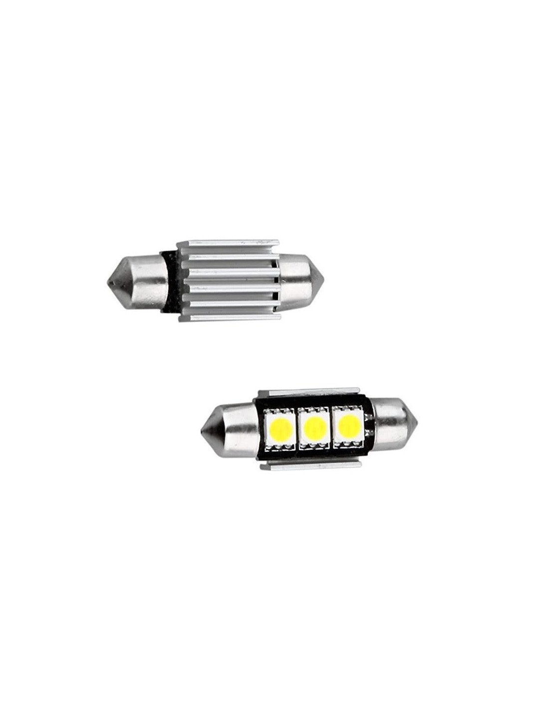 Símbolo: C5W, C10W Casquillo: SV8.5 Longitud: 41mm Cantidad de LEDs: 4 x SMD5050 Potencia: 0,96W Tensión: 12V Color: blanco Canbus: Sí Aplicación: iluminación del interior, matrícula Dedicada para los automóviles de la última generación con el sistema Canbus. Gracias a un circuito integrado especial no da el fallo de la bombilla fundida. Ventajas de las lámparas LED: - vida útil más larga en comparación con las lámparas estándar - menor consumo de energía - encendido y apagado instantáneo - antichoque - instalación sencilla - reproducen los colores con una gran fidelidad Nuestros LEDs tienen el sistema eléctrico con tolerancia hasta 16V. Gracias a esto no se funden durante los picos de tensión. Fabricados con los chips taiwaneses al contrario de los productos competidores con chips chinos baratos consiguen la durabilidad más larga y dan más luz (más lúmenes).