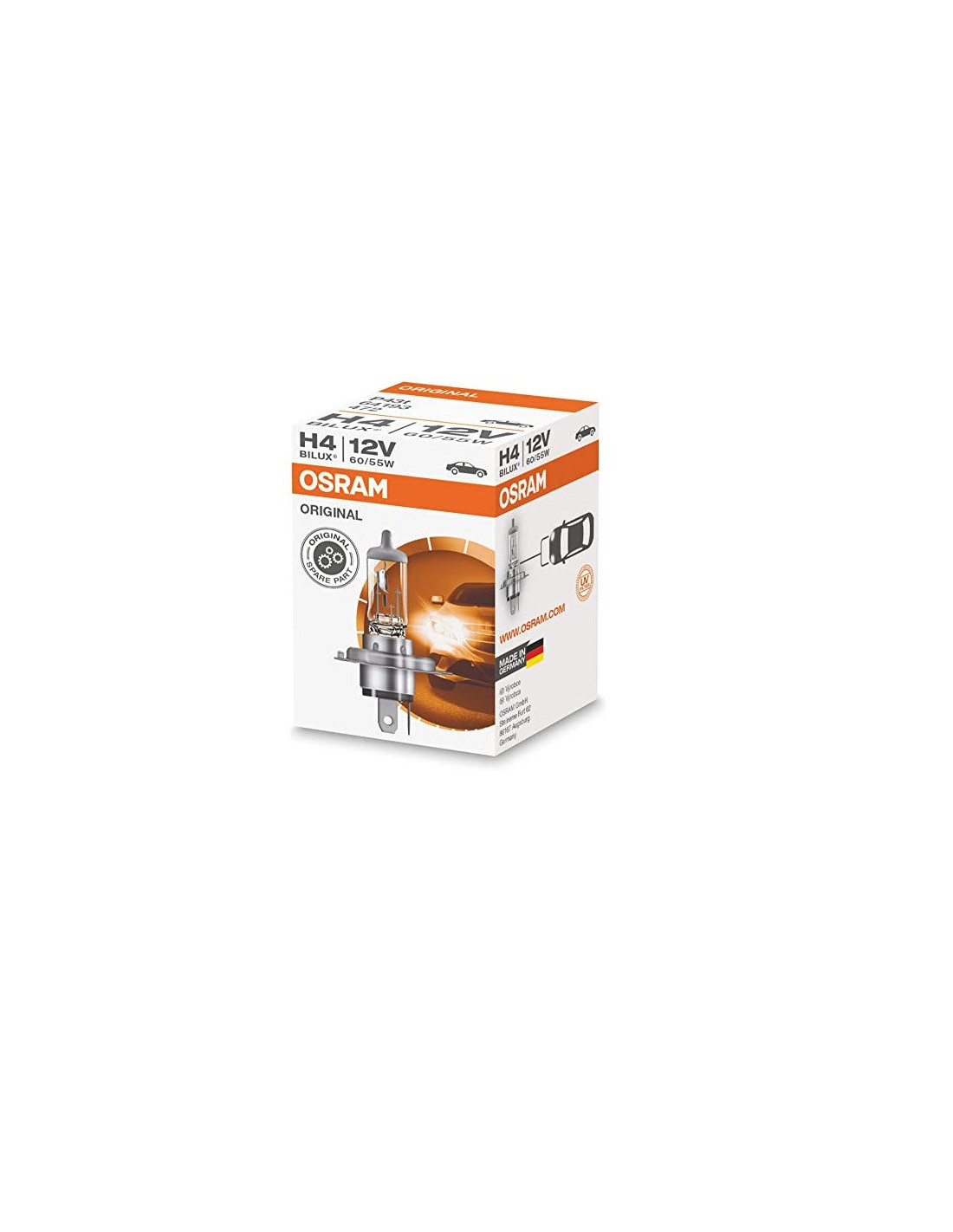 Datos eléctricos Consumo máximo de energía 85/80 W Potencia nominal 75 W Tensión nominal 24 V Tensión de prueba (medición) 28.0 V Datos de luz Temperatura de color 3200 K Flujo luminoso 1900/1200 lm Tolerancia de flujo luminoso ± 15 / ± 15% Dimensiones y peso Longitud 82.0 mm Peso del producto 24,20 g Durabilidad Durabilidad B3 170/350 h Durabilidad Tc 400/800 h Datos adicionales del producto Vástago (solución estándar) P43t Certificados y estándares Categoría ECE H4 País - categorización específica Número de pedido 64196 Beneficios de usar el producto Calidad OEM Una amplia gama Calidad confiable Área de aplicación Faros Características del producto Repuestos originales